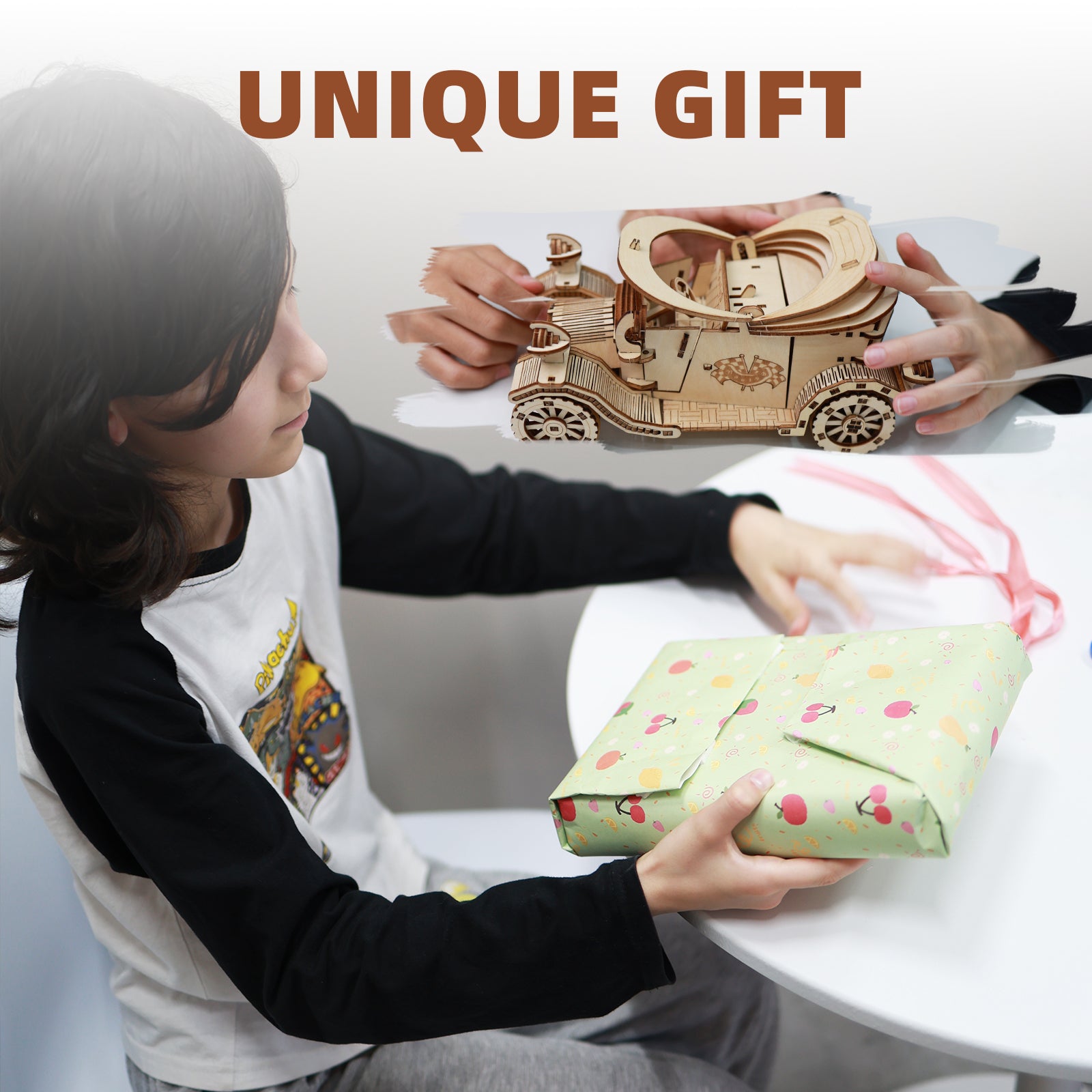 DECORATIVE DISPLAY: Once completed, this eye-catching wooden car model can be proudly displayed as a decorative centerpiece or conversation starter.