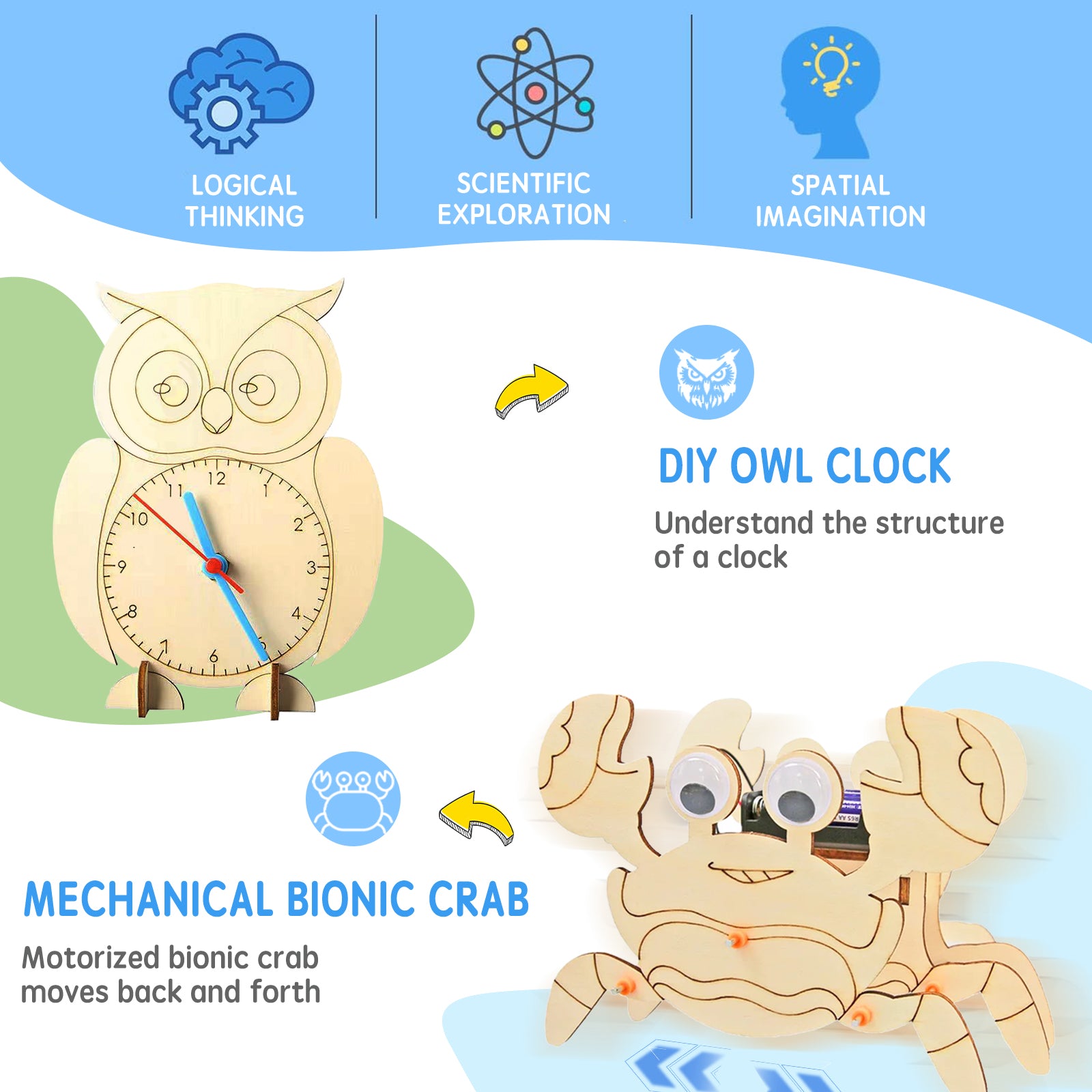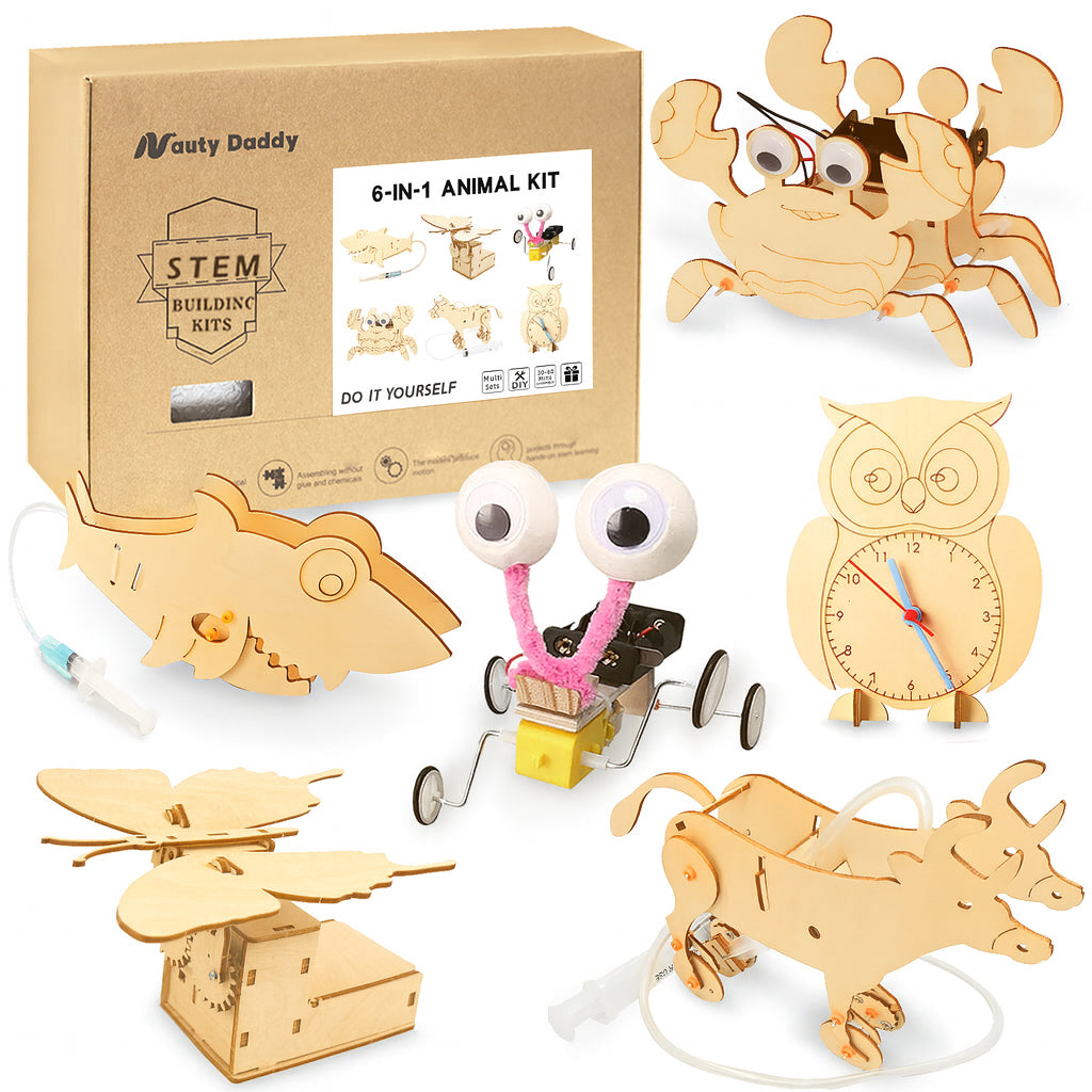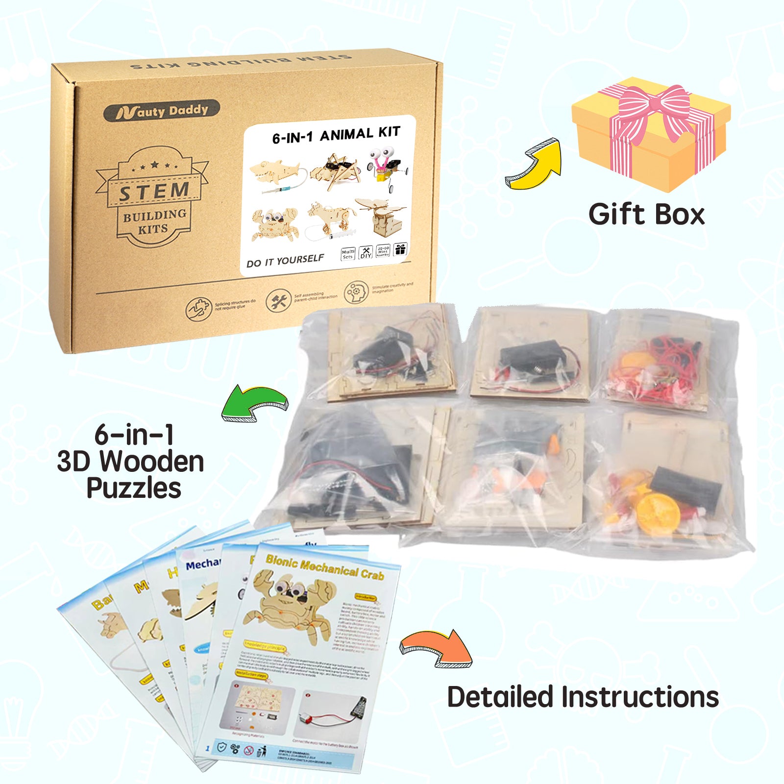 6-in-1 DIY 3D Animal Wooden Puzzle Set – STEM Building Toy with Articulated Parts & Storage Bag for Kids Ages 6+