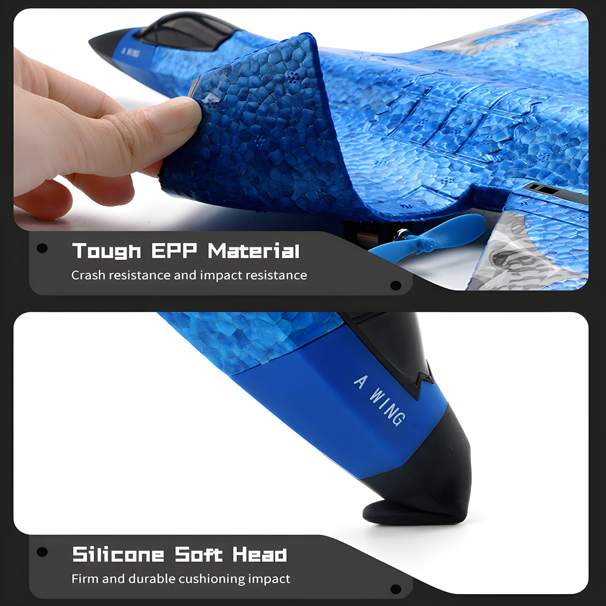 - HIGH QUALITY MATERIALS:The fuselage of rc glider is made of tough EPP foam, lightweight and drop resistant, flexible and durable flight, the nose of the airplane is made of soft rubber material, cushioning the impact, effectively extending the life of the airplane.