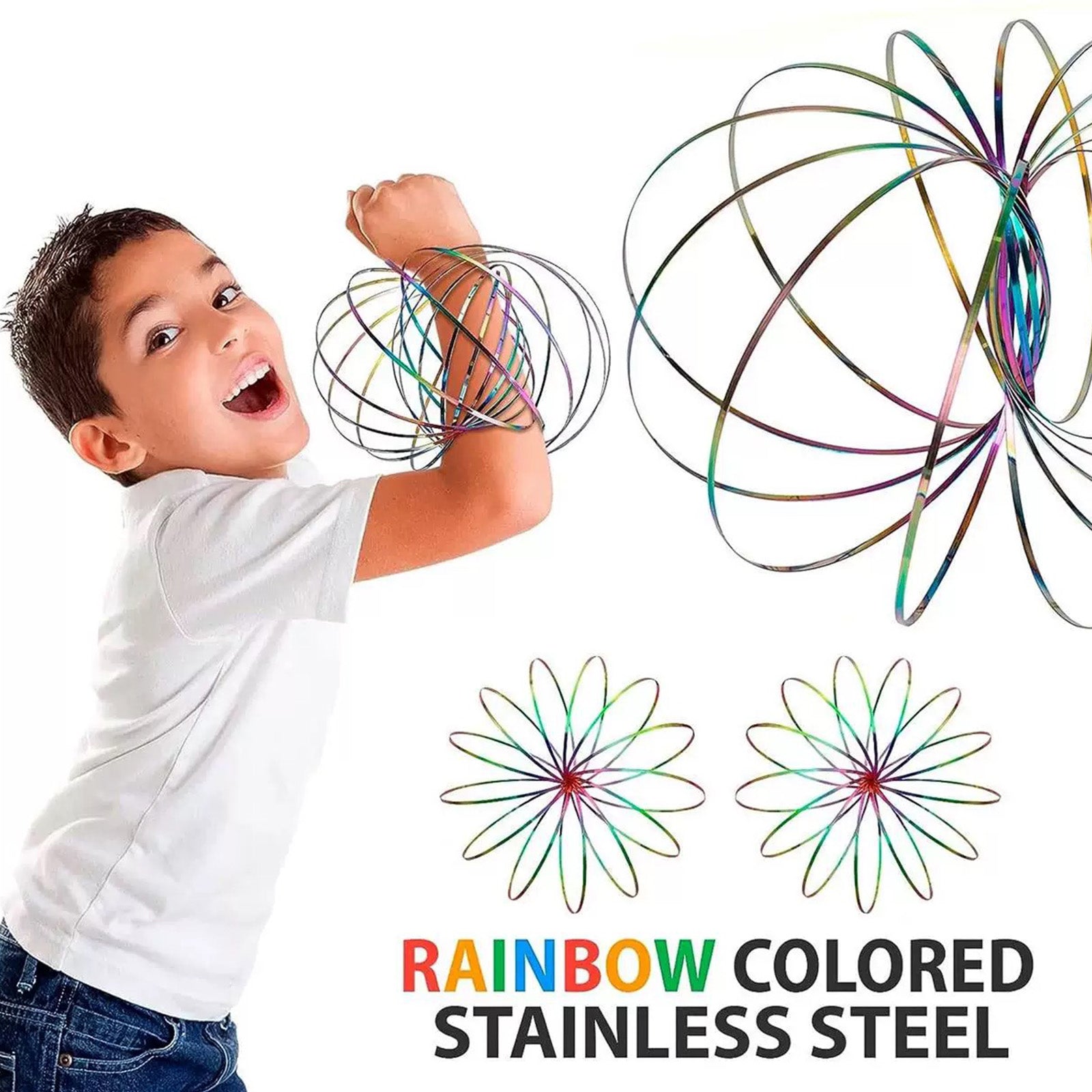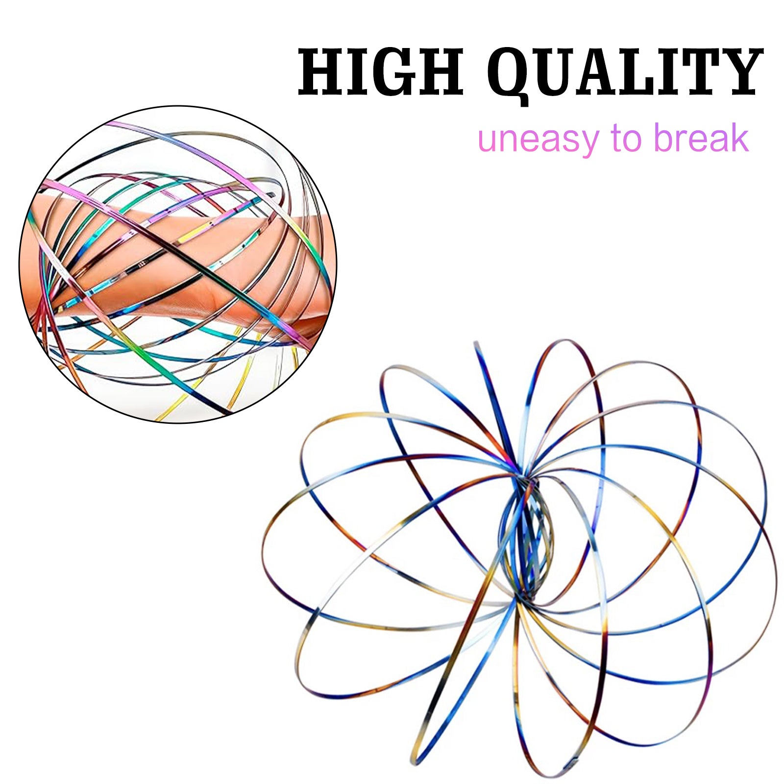 - KINETIC FLOW RING FIDGET SPINNER MAGIC BRACELET:3D shaped bracelet spinner, Folds Flat(5.2") and Pops Open.(10") | STAINLESS STEEL; THE SURFACE ISSMOOTH AND NOPOINTED EDGES、 color magic ring toy is small size and compact for travel.